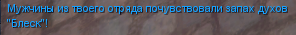 1) Не надо постить линк на духи в груповой чат, надо надушить партнера. Для этого нужно выполнить следующие условия: женщина должна быть лидером группы и ее партнер должен находится на одном с ней канале. Если все условия выполнены дама может спокойно кликать по духам правой кнопкой мыши в инвентаре. Партнер увидит сообщение, какими духами она его надушила. Для подстраховки можно предупредить партнера, что его будут душить , чтобы он этот момент не пропустил, пока ходит за чаем.