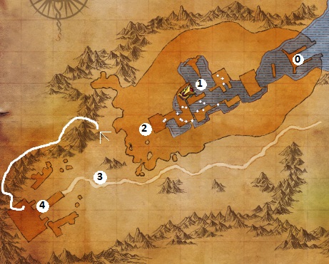 Итак, остается последний босс - Монтис Де Соул (на карте №4). Путь к боссу лежит через мобов, которых вы убивали для вызова Апофиса. Если вы уже расчищали эту местность для саммона третьего босса, то, чтобы добраться до Монтиса, вам всего лишь нужно будет пройти по лестнице пирамиды через скарабеев (они падают с одного тычка). Если вы решили не вызывать Апофиса и не убивали мобов, то можно избежать потасовки с священниками и охранниками и просто обойти вражин с фланга по горе. Подъем на гору находится прямо около выхода из логова Юрия (На карте отмечено белой линией со стрелкой).