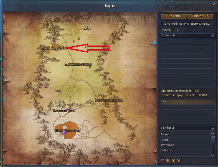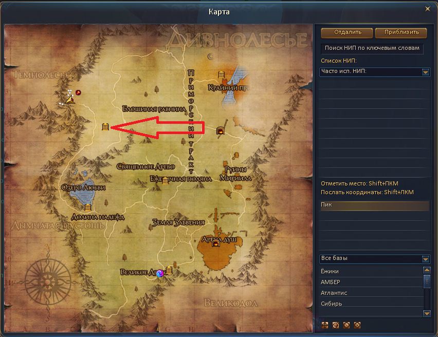 Далее идём в "Тихий город" (координаты смотрите выше). Продаём там всё и покупаем "Пергамент" и "Сосуды"