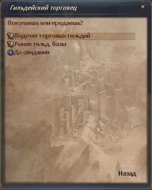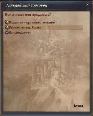 У него можно произвести расчёт и купить начальные товары. Итак переходим во вкладку "Рынок гильд. базы"
