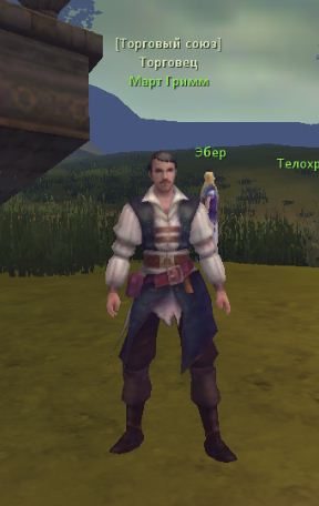 Идём в телепортеру "Торговый караван". (координаты смотрим выше). Далее идём ко входу гильд. базы. Видим торговца "Март Гримм".
